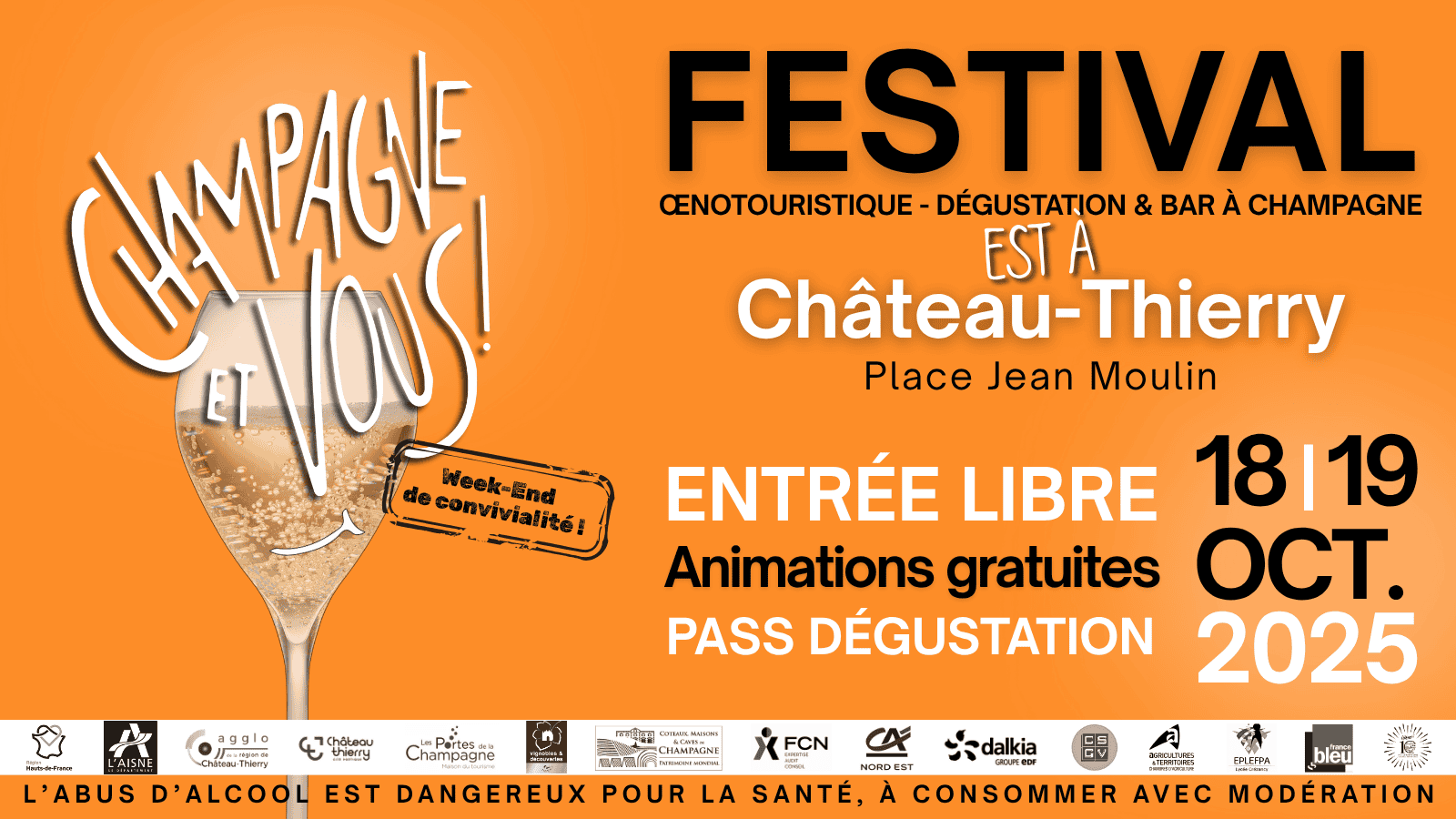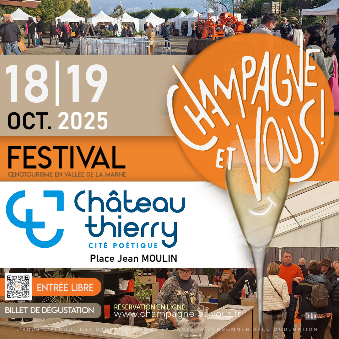 Samedi 18 & Dimanche 19 Octobre 2025 :: Festival Champagne et Vous ! Venez découvrir les champagnes de la Vallée de la Marne à Château-Thierrry.
